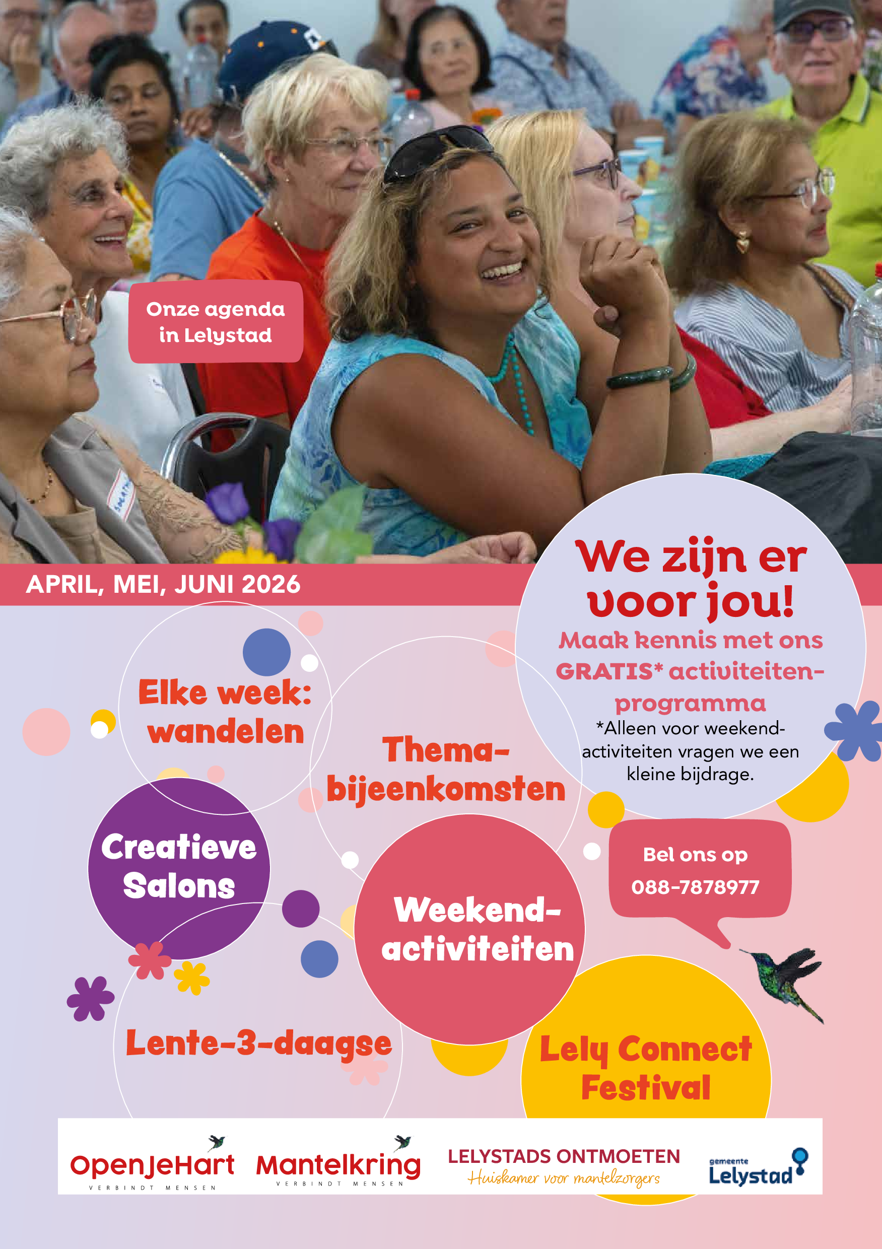 De activiteiten van Mantelkring zijn gratis toegankelijk. Wel dien je je van tevoren op te geven, waarna je automatisch de uitnodigingen voor de activiteiten toegestuurd krijgt. Inschrijven kan via dit formulier of telefonisch via: 088 – 78 78 988.
