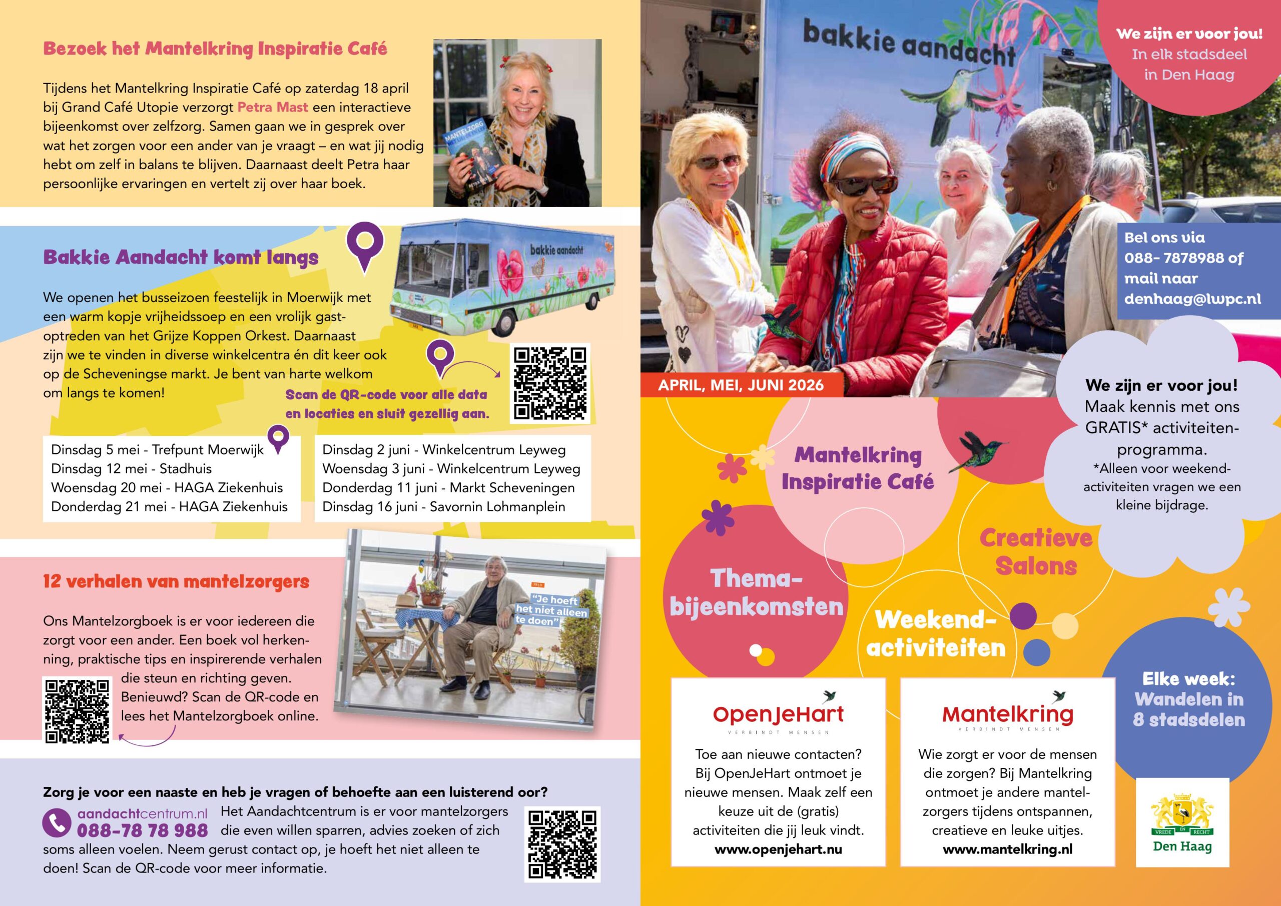 We zijn weer op pad me ons Bakkie Aandacht, de rijdende huiskamer (een originele SRV-wagen van vroeger) trekt weer Den Haag in. Aandacht geven en luisteren naar elkaar helpt. Als mantelzorger weet je dat als geen ander. Vaak gaat alle aandacht uit naar de persoon voor...